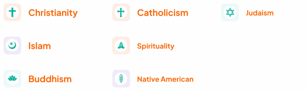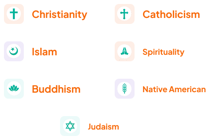Individual and group multi-faith spiritual content. Perfect for spiritual support, religious practices, Bible studies, prayers, and meditations.