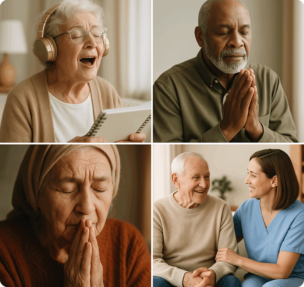 All content is carefully designed for memory care, combining therapeutic music, spiritual support, and enriched activities. Our most popular programming includes specialized sessions and group experiences tailored to every stage of cognitive care – bringing comfort, connection, and joy.